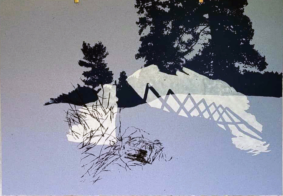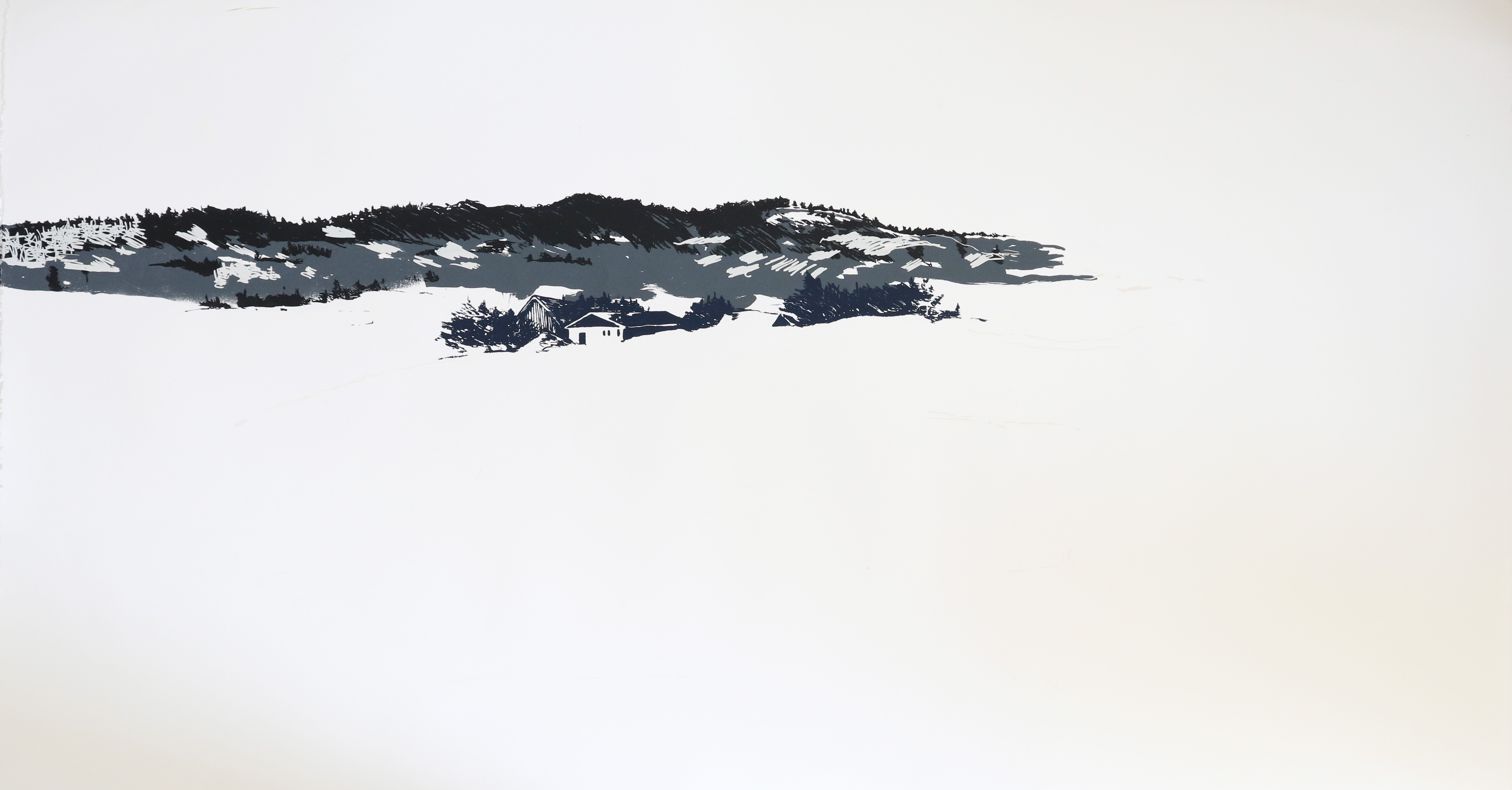 En sillonnant les rangs et en marchant le territoire elle recherche des éléments à photographier. Puis, dans ses banques d’images, elle choisi des sections qu’elle dessine pour concevoir ses oeuvres qui seront imprimées en sérigraphie.