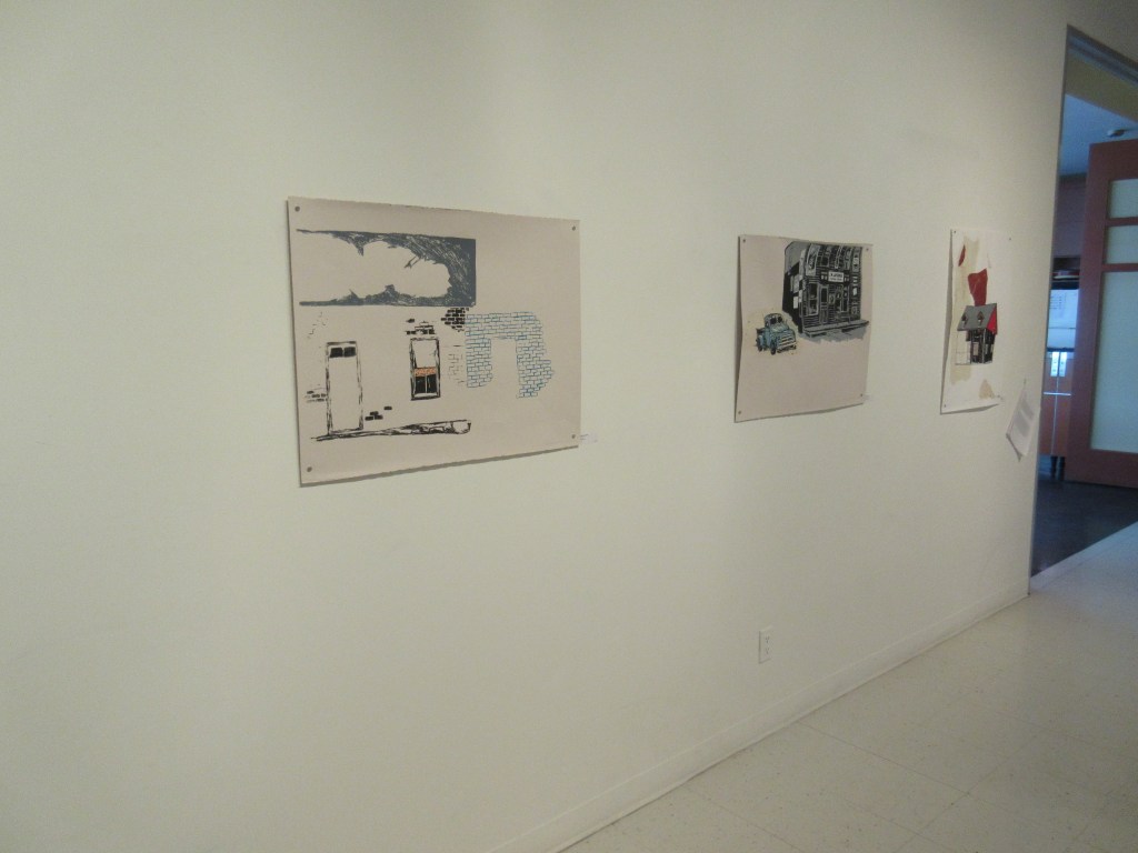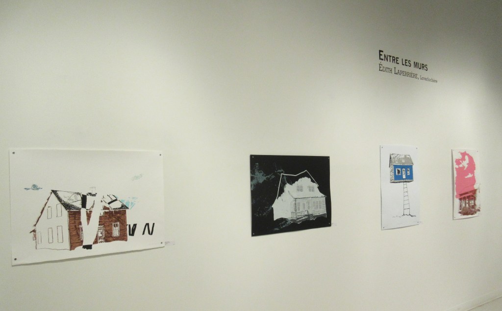 Entre les murs est une exposition qui s’inspire des souvenirs et du sentiment d’appartenance envers le territoire rural. Les éléments iconographiques présents dans les images sont principalement des éléments architecturaux et des habitations modestes du Témiscamingue. Je les ai transformés et reconstruits pour créer des compositions épurées. Jouant sur les contradictions, les œuvres sont parfois lourdes et légères, opaque et transparentes, complètes et incomplètes pour renforcer l’aspect insaisissable et évolutif des souvenirs.