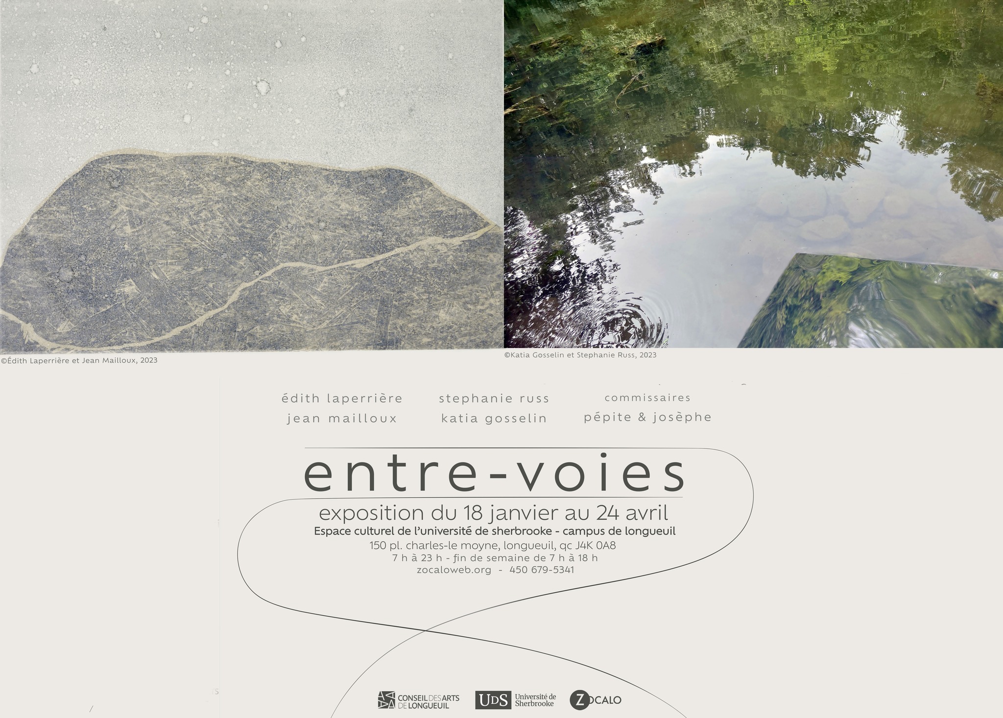 L’exposition entre-voies est présentée du 19 janvier au 25 avril 2024 à l’Espace culturel de l’Université de Sherbrooke campus de Longueuil (150, place Charles-Le Moyne, 3e étage, Longueuil.)